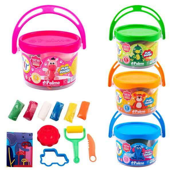 خمیربازی سطلی ۶ رنگ همراه با ابزار برند palmo۱۵۵٬۰۰۰ تومان