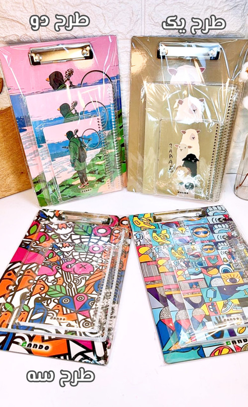 - ست اقتصادی شامل تخته شاسی سایزA4 ،دفتر ۸۰ برگ و دفتر یادداشت