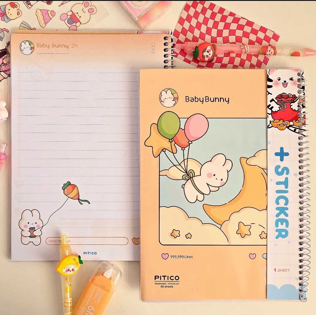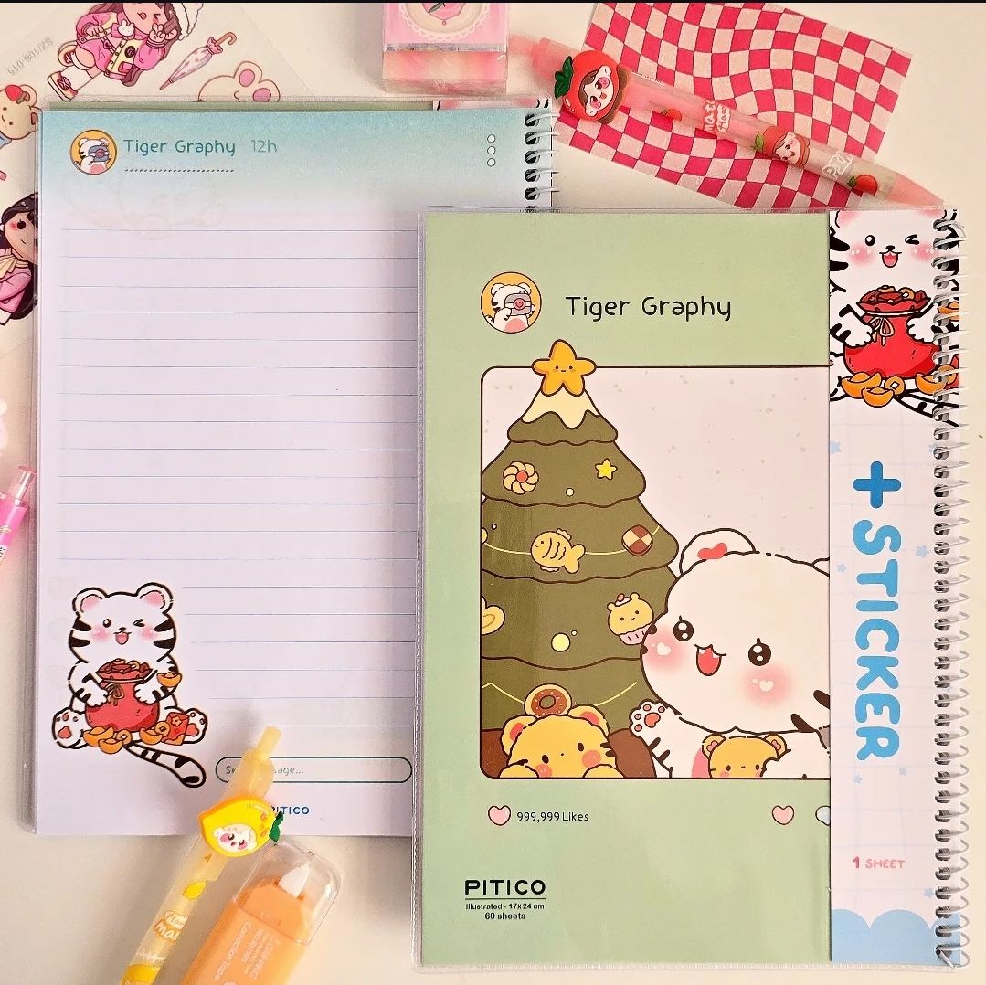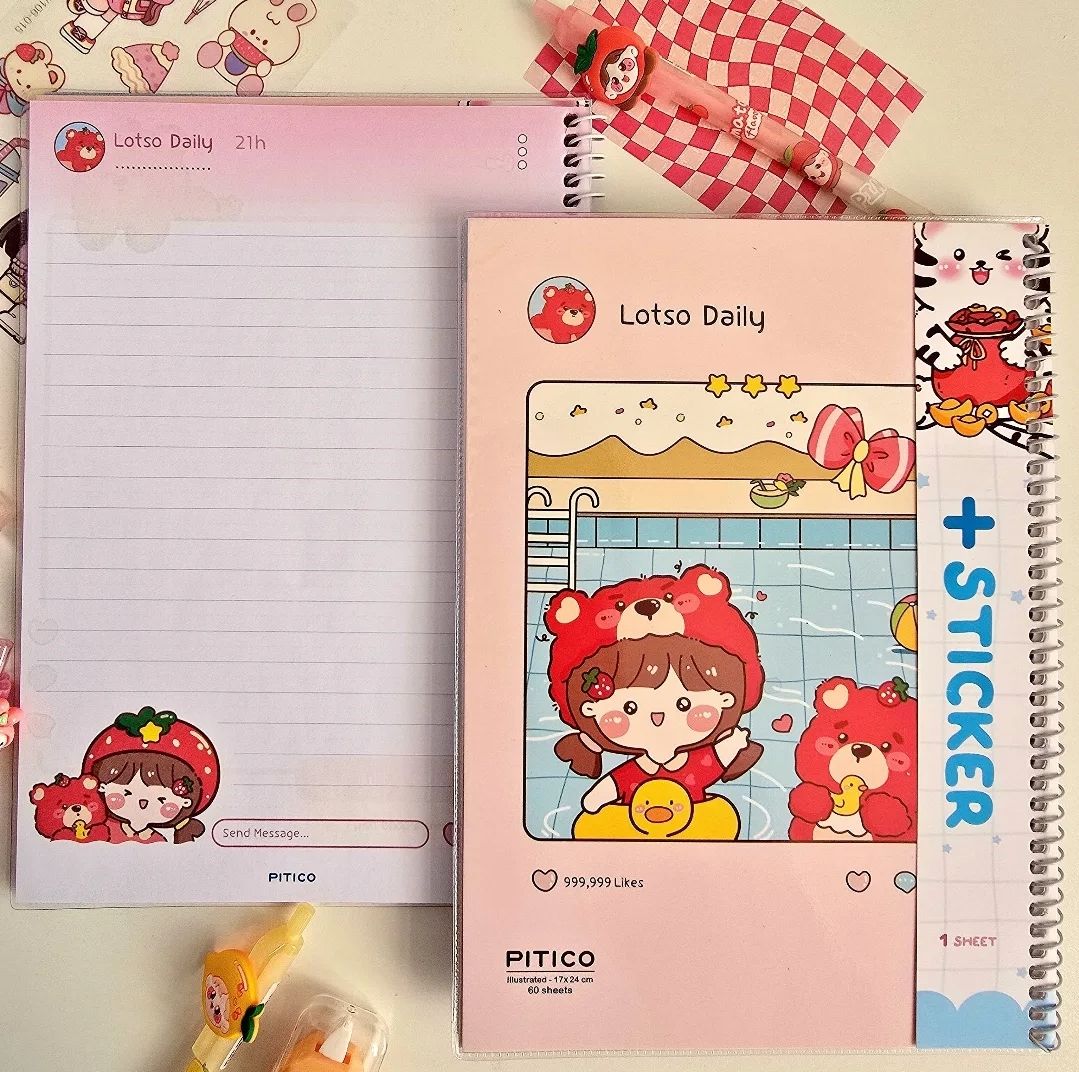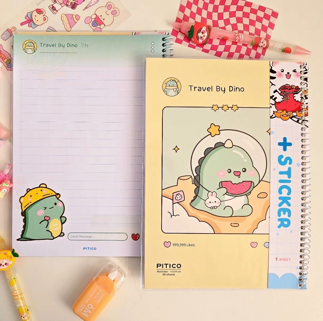 دفتر ۶۰ برگ فنری طرح دار جلد شده دارای استیکر برند پیتیکو