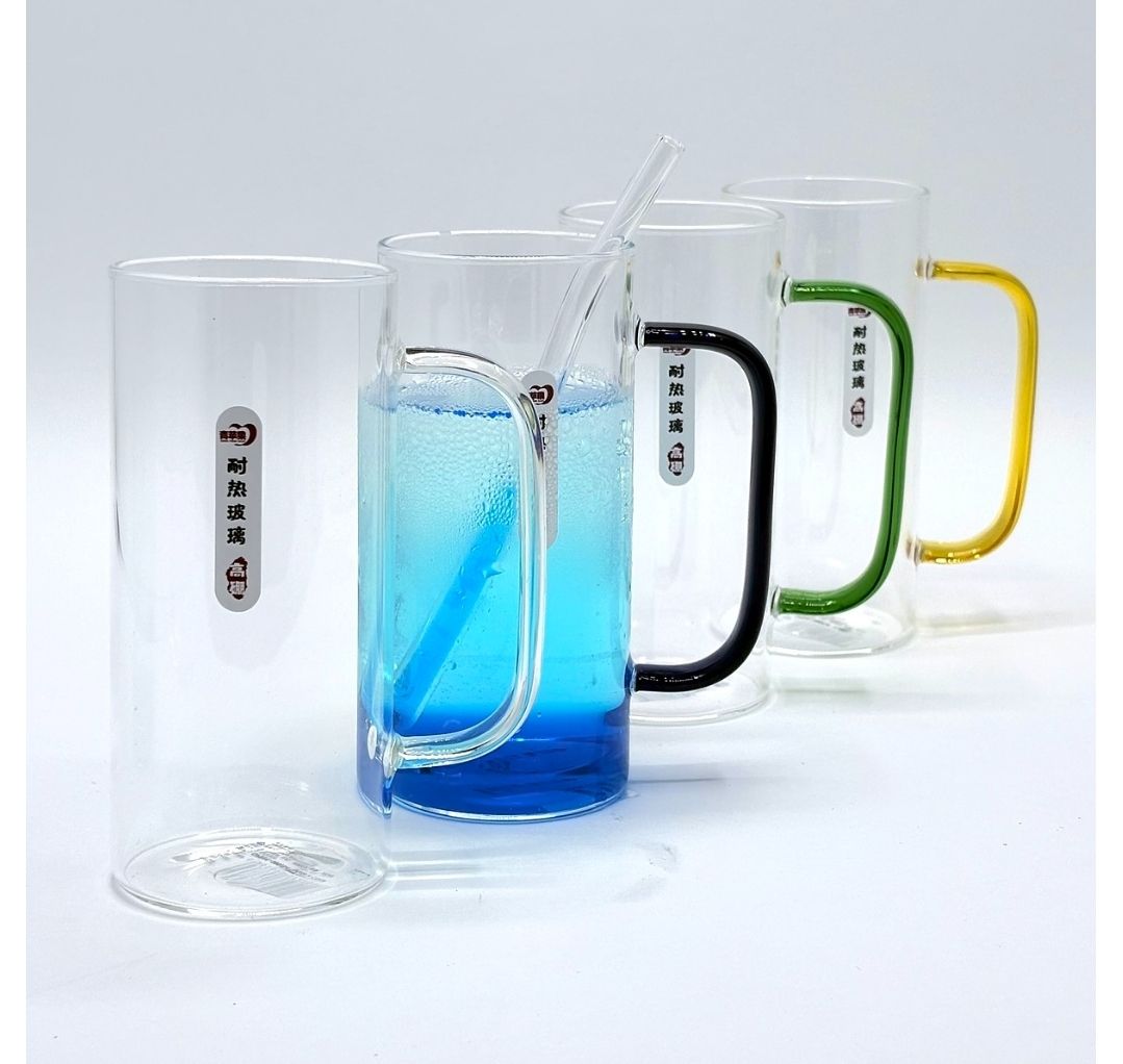 🌈ست ۴ تایی لیوان پیرکس استوانه دسته رنگی🌈