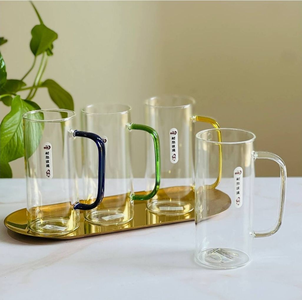 لیوان پیرکس استوانه ای دسته رنگی۱۸۵٬۰۰۰ تومان